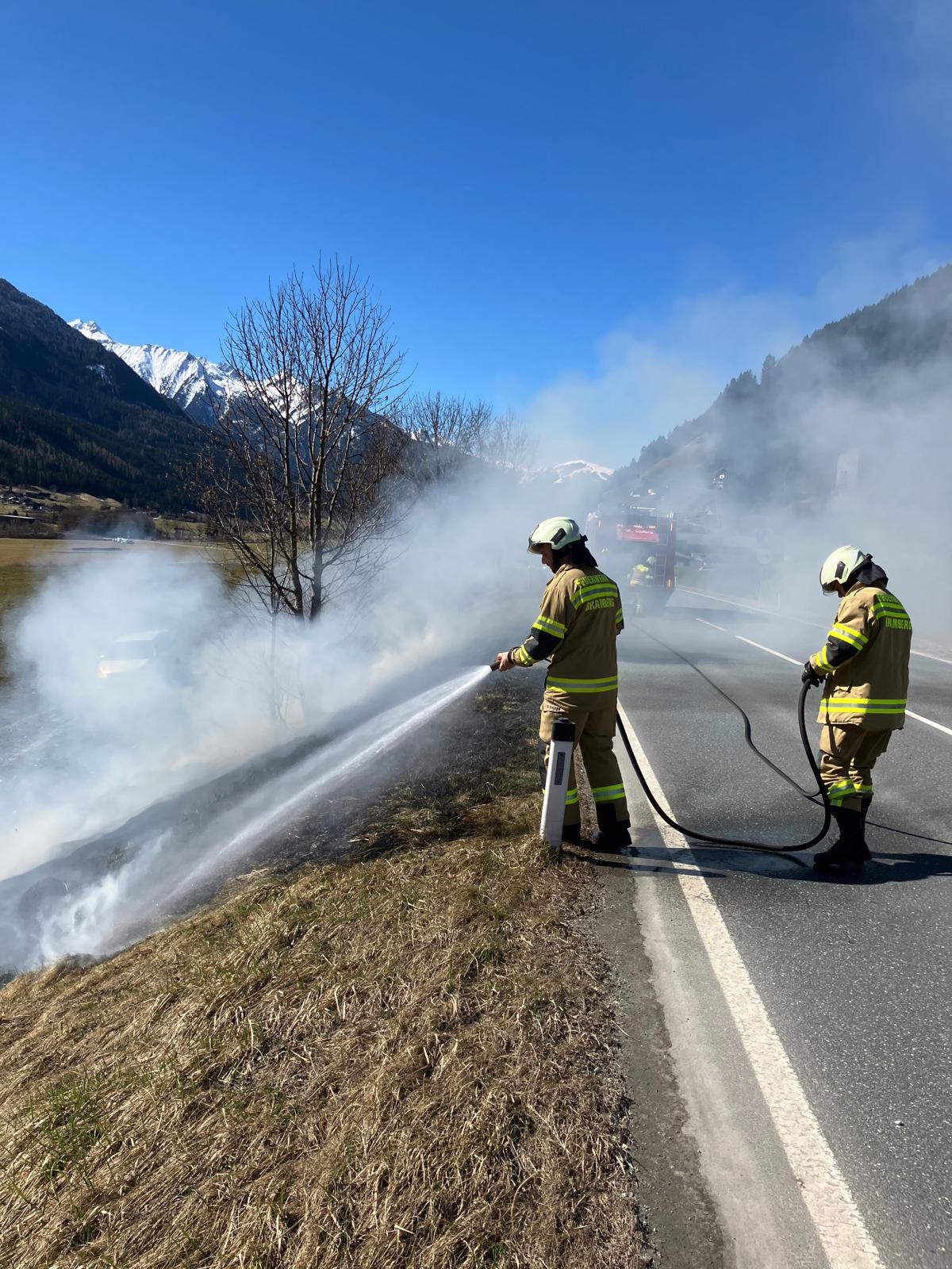 Die Freiwillige Feuerwehr Bramberg wurde um 11:29 Uhr zu einem Böschungsbrand auf die B165 bei Kilometer 14,2 (Weyerbühel) alarmiert.
